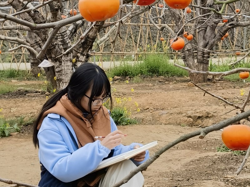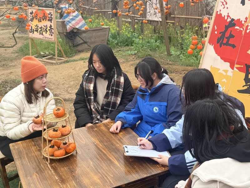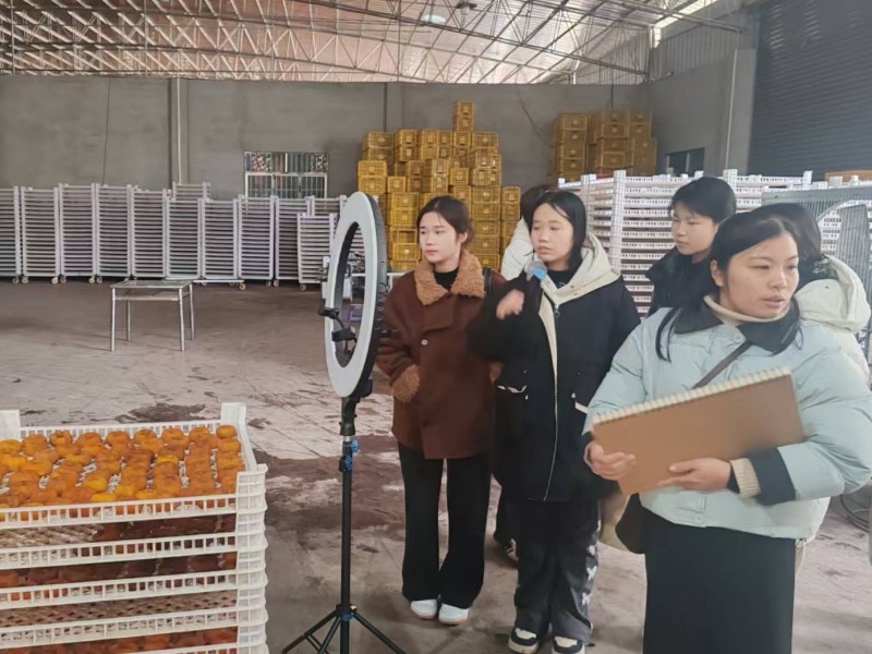 随后,师生探访当地柿子加工厂,观摩鲜柿分拣、烘干等标准化流程,详细了解柿饼、脆柿等产品的包装设计与电商、出口等销售渠道,推动课堂知识与产业实际精准对接。