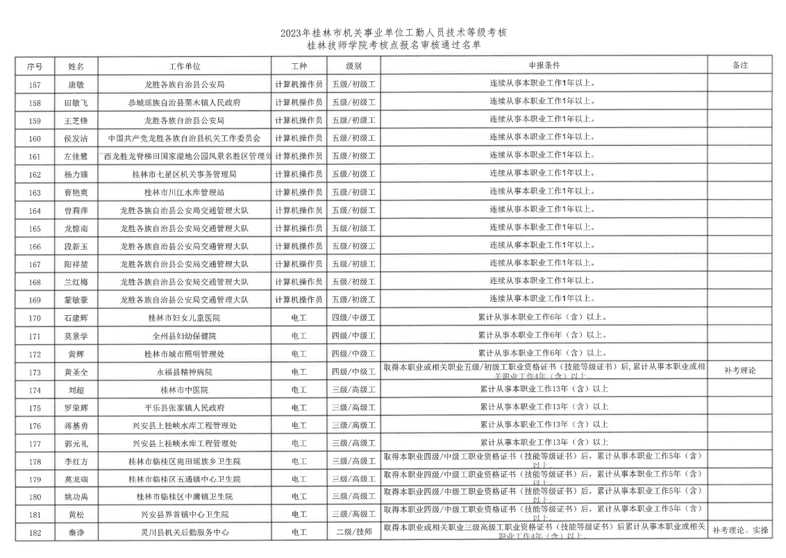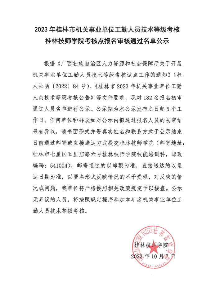 2023年桂林市机关事业单位工勤人员技术等级考核桂林技师学院考核点报名审核通过名单公示