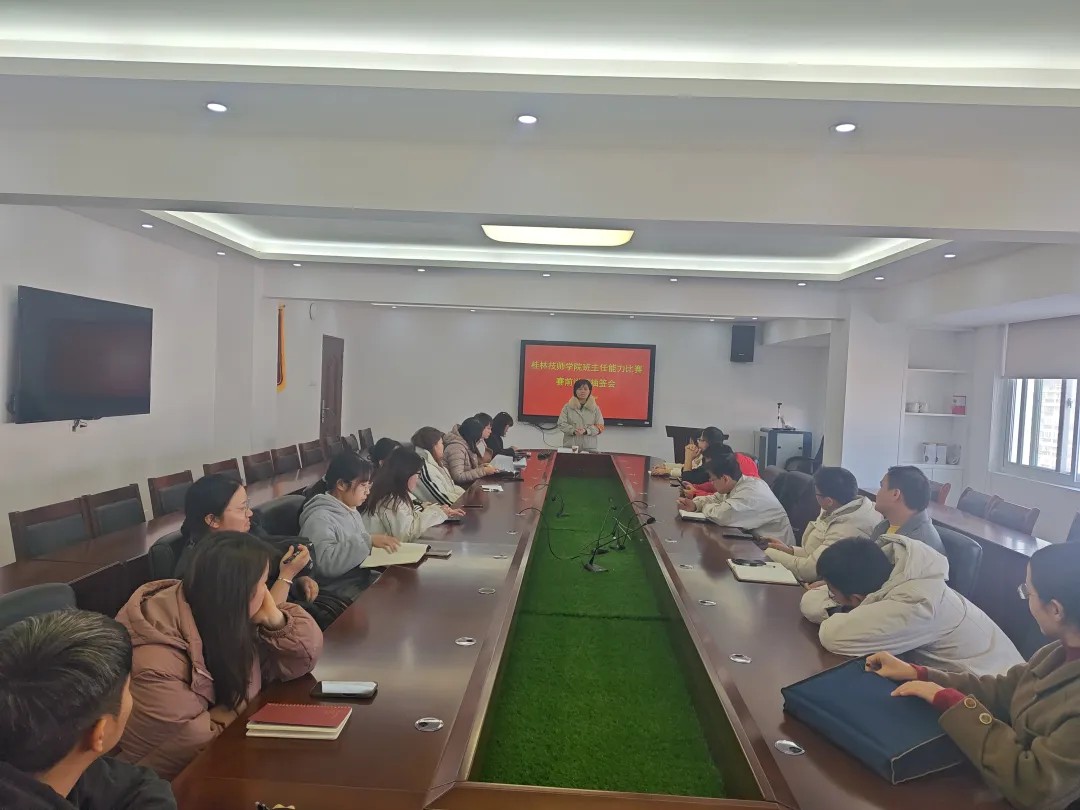 2025年1月6日下午,班主任能力比赛决赛在学院录播室举行。桂林市旅游职业中等专业学校学生科欧紫薇副科长、广西名班主任工作室主持人孙韵雯老师,以及我院优秀班主任覃园媛老师受邀担任决赛评委。比赛过程紧张而有序,每位参赛选手通过5分钟的时间阐述自己的主题班会设计,他们通过生动的讲解和形象的演示,充分凸显各自的主题班会内容,不仅展示了扎实的专业素养,还体现出了对学生个体差异的关注和尊重,以及对学生全面发展的重视。现场答辩环节,面对评委们的提问,参赛班主任们沉着冷静,机智应对,展现出了良好的应变能力和育人智慧。
