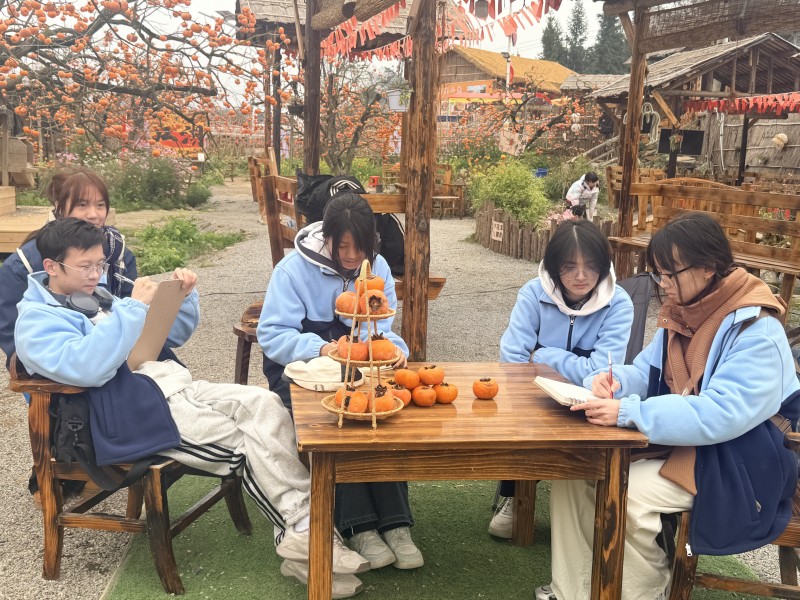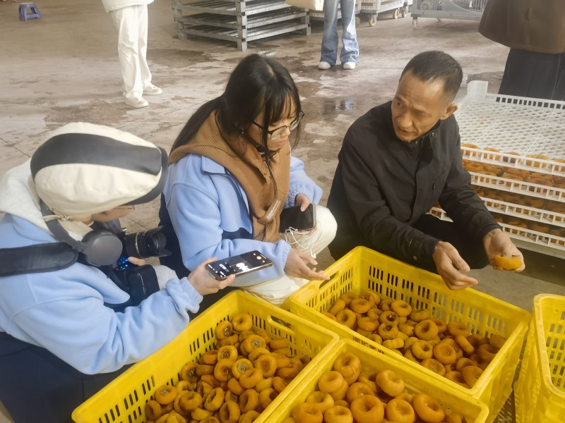 随后,师生探访当地柿子加工厂,观摩鲜柿分拣、烘干等标准化流程,详细了解柿饼、脆柿等产品的包装设计与电商、出口等销售渠道,推动课堂知识与产业实际精准对接。