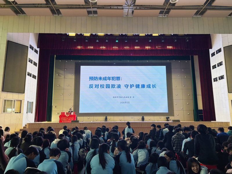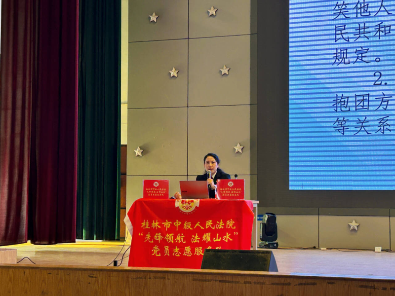 宣讲现场,桂林市中级人民法院民事审判第一庭副庭长黄荣以“预防校园欺凌,守护未成年健康成长”为主题,围绕“守护未成年健康成长的重要意义”“校园欺凌的界定与表现形式”“校园欺凌的治理路径”“校园欺凌的预防措施”四大板块展开系统阐释。黄荣依据《预防未成年人犯罪法》等法律法规条文,结合司法真实案例清晰解读了校园欺凌的法律界定、责任划分及处置流程,明确了青少年校园生活中的行为边界与法律义务,帮助同学们直观理解法律条文对个体行为的规范指引与权益保护双重作用。