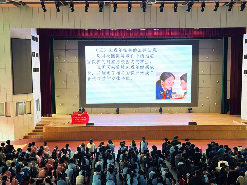 为营造安全、文明、和谐的校园法治氛围,从源头上预防和减少青少年违法犯罪行为发生,3月30日下午,我院联合桂林市中级人民法院、毅峰社区在学院大礼堂举办“法治教育进校园”主题宣讲活动,2023级、2024级全体学生到场参与,活动由学生科科长彭苏主持。